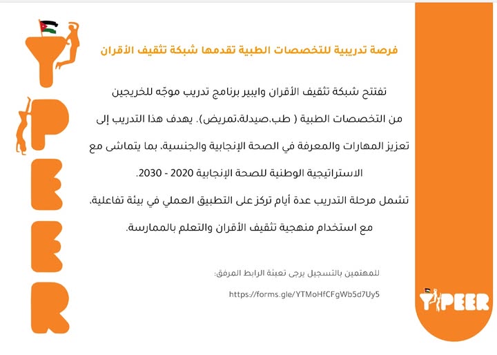 *فرصة تدريبية للتخصصات الطبية تقدمها شبكة تثقيف الأقران YPEER Jordan